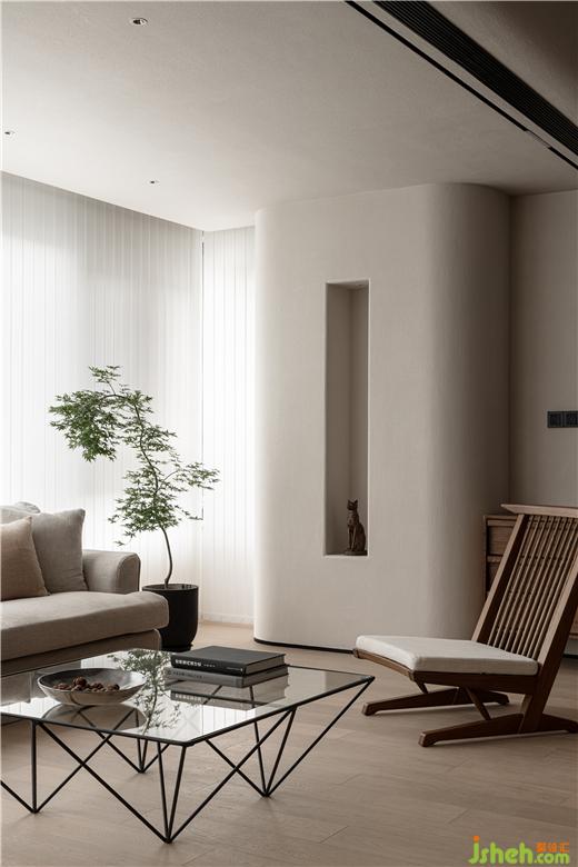 成都香悅府裝修設(shè)計(jì)整個(gè)房屋劃分為「社交」、「私密」兩個(gè)區(qū)域,之所以如此劃分明確,是因?yàn)樵跐M足最基本的生活需求前提之下,設(shè)計(jì)師希望屋主獲得更加便捷,有趣的生活體驗(yàn)。