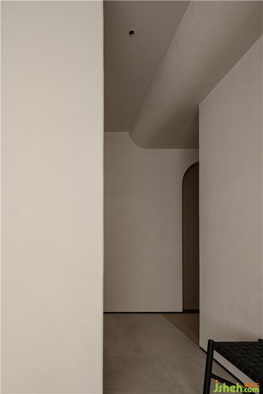 陽(yáng)臺(tái)納入客廳空間,利用弧線造型包裹原本陽(yáng)臺(tái)的梁與柱,柔和的過(guò)渡使得空間線條感更為流暢,視覺(jué)層次感更為豐富。沙發(fā)臨窗而置,即為了更好的視野,也是為了營(yíng)造出更為愜意的空間意境,在日常生活中難以得到的狀態(tài)。