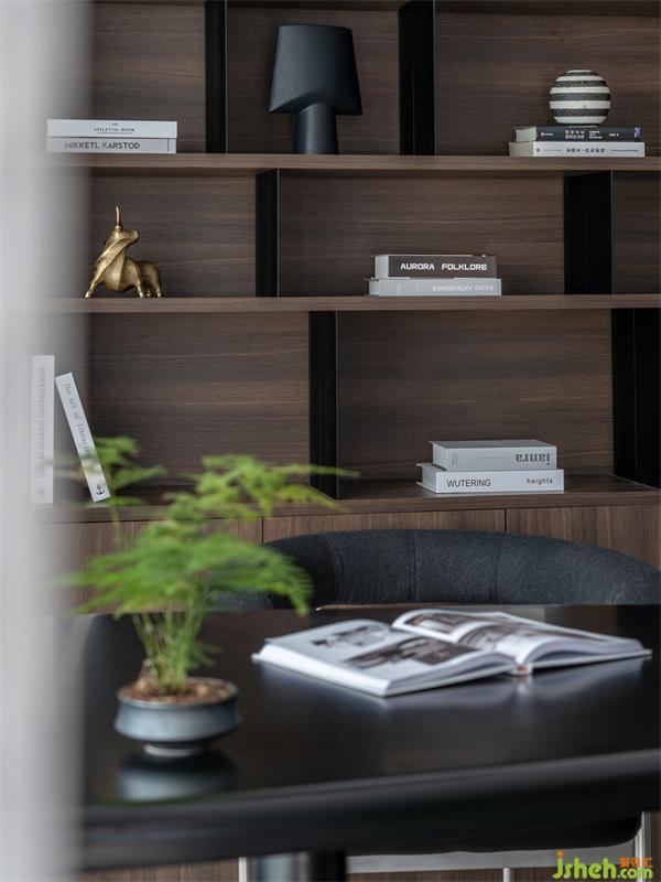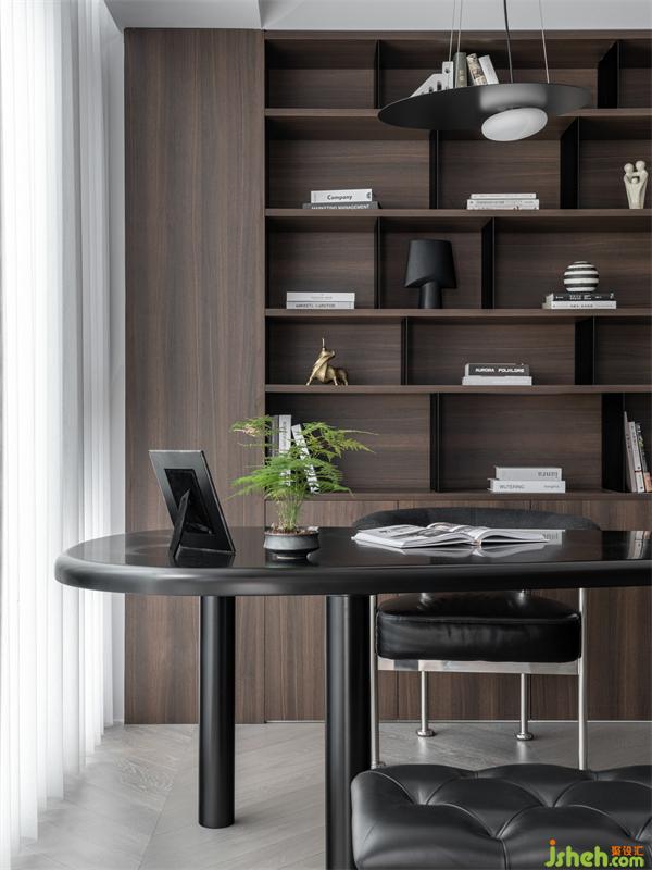 書房的家具搭配主要以黑色為主,沉穩(wěn)的配色可以讓空間更加大氣,也有助于安靜的思考。收納式書架,即方便又實用 ,暖色的燈帶將書房氛圍柔化得恰到好處。