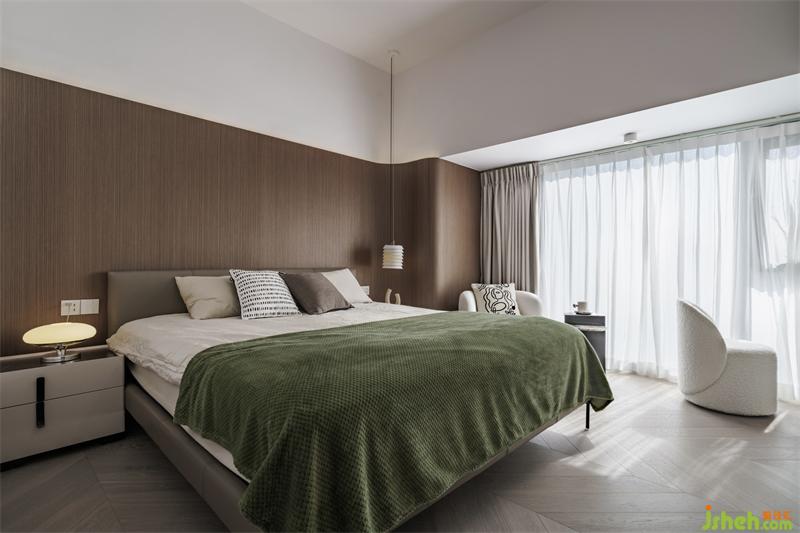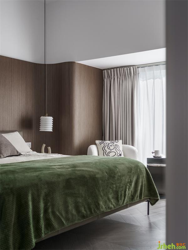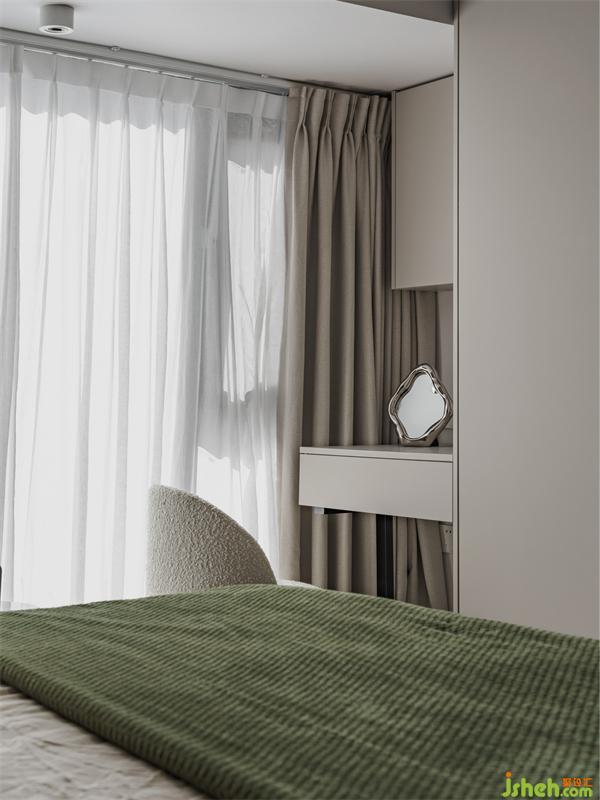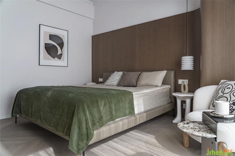 全開的落地窗戶使得主臥的采光異常的好,即使在寒冷的冬日沐浴在陽光下的主臥也很暖和。不需要過多裝飾,一幅簡單的掛畫,精心挑選幾件喜愛的物件便能讓空間更豐富,讓生活更有情調(diào)。