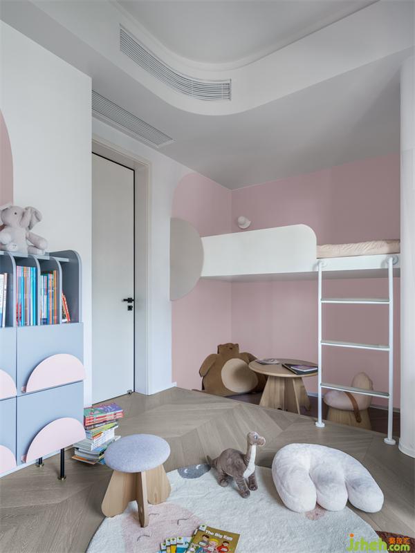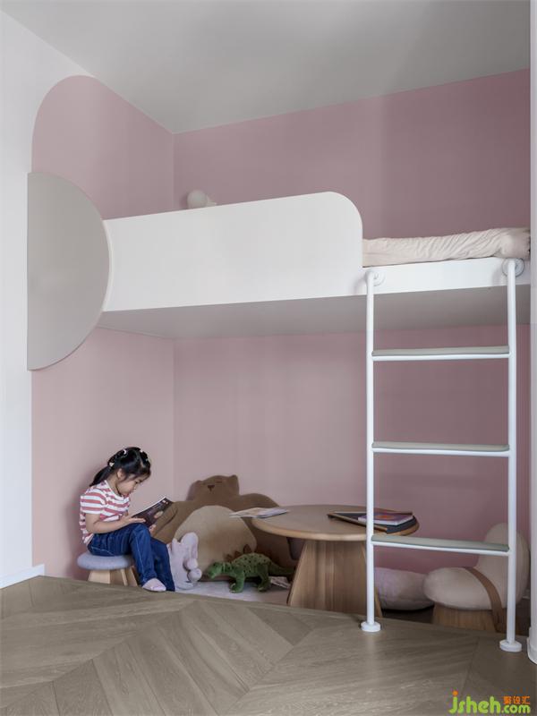 粉白色的搭配,有一種清爽的溫柔感,甜蜜的粉色城堡,爬上爬下的雙層床,很多個(gè)自己喜歡的公仔,小朋友想要的房間終于達(dá)成。