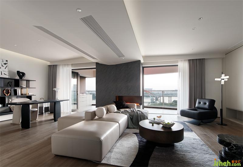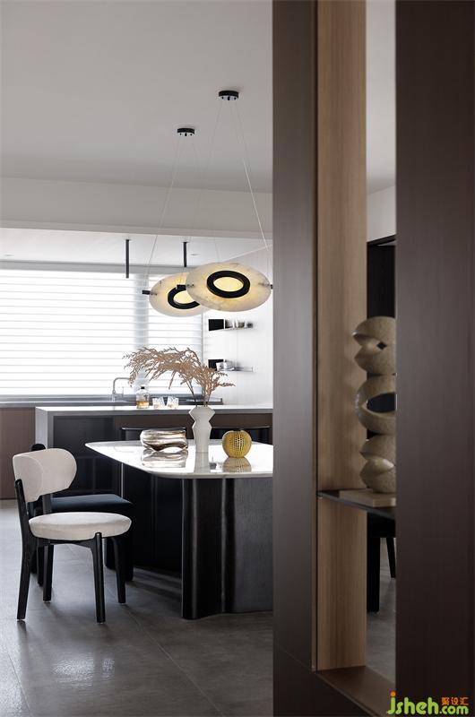 開放式的室內(nèi)布局,將各個(gè)功能區(qū)串聯(lián)起來,加入軟性隔斷,實(shí)現(xiàn)整體的洄游設(shè)計(jì),從而提高家人的互動(dòng)性,達(dá)到空間使用率最大化。