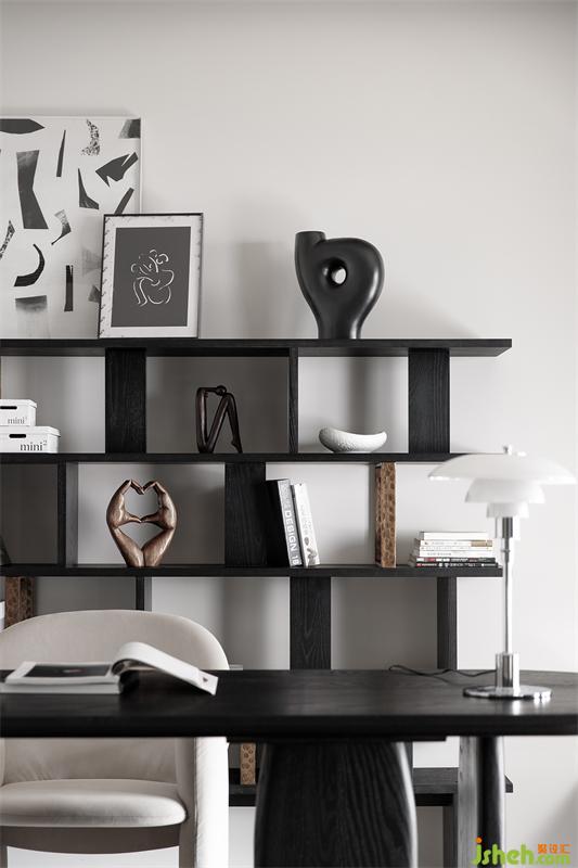 書柜上的各種風(fēng)格的擺件、裝飾畫,打破墻面的沉悶,呈現(xiàn)出迷人的摩登氣息,在細(xì)節(jié)中彰顯主人的格調(diào)與品位。