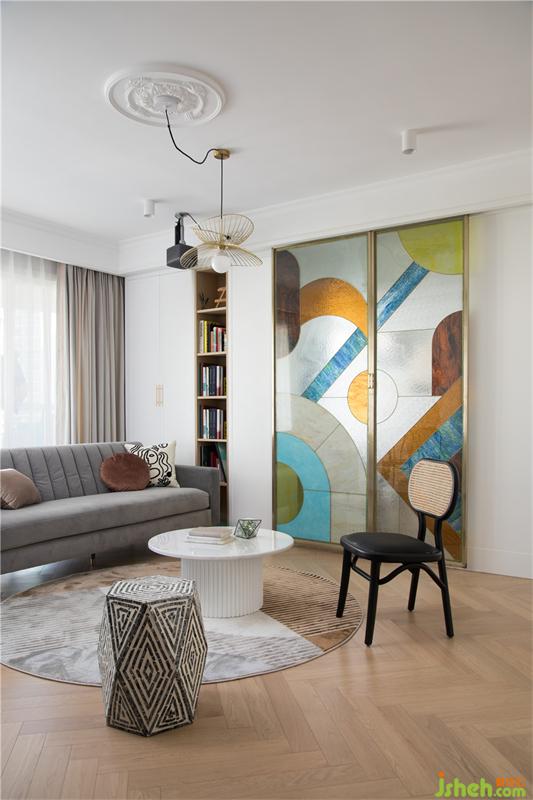 法式裝修設(shè)計沙發(fā)和休閑椅都以屏風為中心圍合式擺放,配以抽象風格的地毯,完美的和彩繪的玻璃屏風形成視覺的連通,讓屏風在關(guān)閉的時候成為空間最美麗的風景。