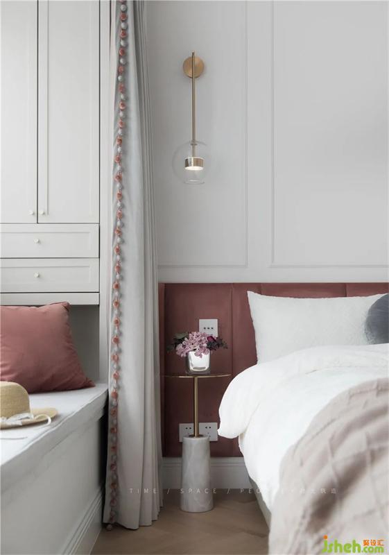 特意用了一個(gè)和法國典型的向上拉的紗簾,清晨的陽光透過紗簾透進(jìn)來,法式家居設(shè)計(jì)軟軟的灑在雪白的床單上,我想你有100個(gè)理由再在床上賴床10分鐘,享受這片刻的溫暖。