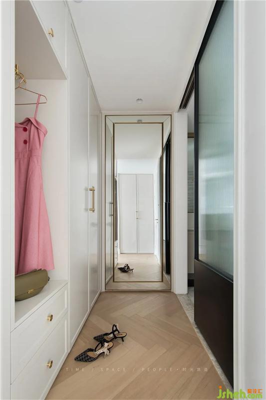 機(jī)關(guān)收納四,又是穿衣鏡,又是收納柜,又能反射對面衣柜空間,看起來像一個(gè)巨大的衣帽間。