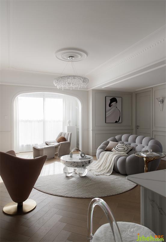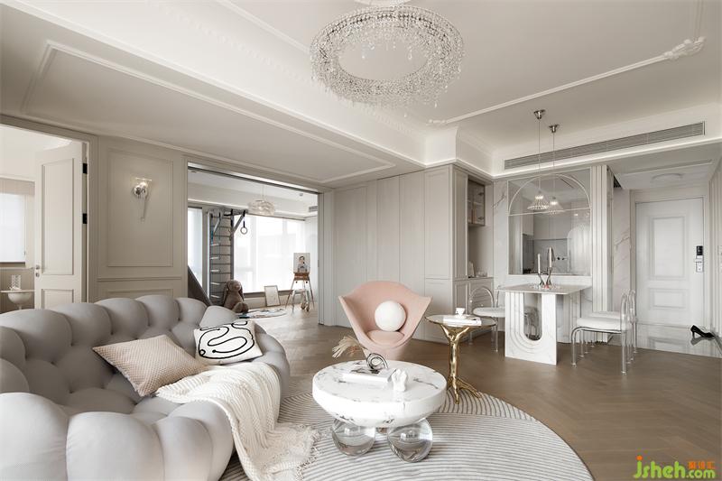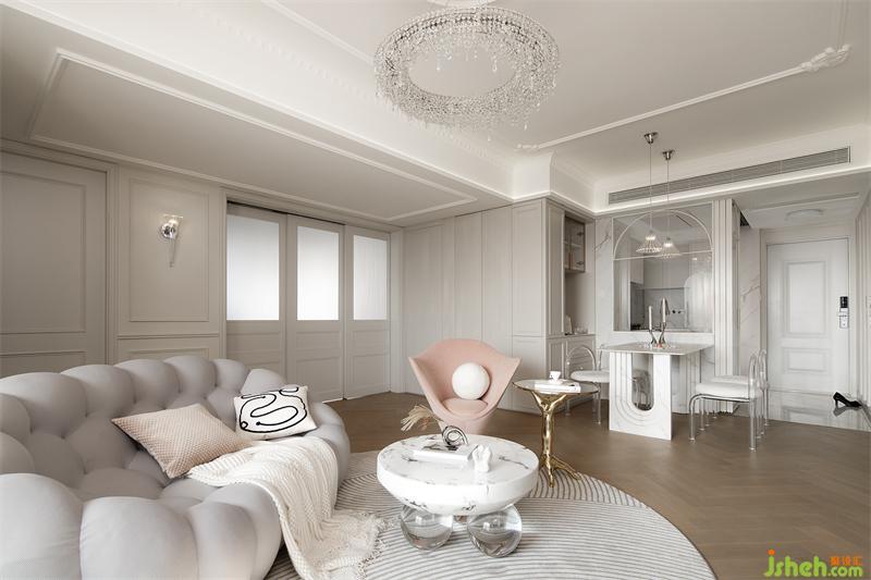 局部點綴的粉色酒杯單椅讓女性的優(yōu)雅氣息融入居住空間內(nèi),柜門的把手也采用了同樣的粉色來與單椅呼應(yīng),法式藝術(shù)設(shè)計讓裸色的氛圍瞬間變得甜蜜而夢幻,細(xì)小的東西往往容易被人忽略,卻也最容易溫暖居住者的內(nèi)心。