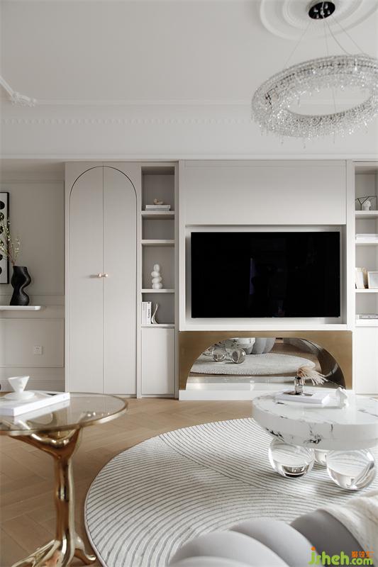 入門的第一眼視覺便停留在了這面圓形的梳妝鏡子上,圓形的造型完美演繹出自然與藝術(shù)的結(jié)合。法式藝術(shù)設(shè)計更有趣的是這面鏡子不但有梳妝鏡的功能,還和洗手間洗手臺的鏡面遙相呼應(yīng),相互映射,形成無限延伸的趣味性和空間感。
