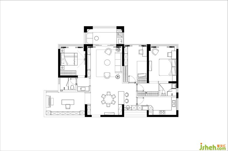 戶型方正,生活核心區(qū)較為寬敞,各個臥室分散在公區(qū)周圍,空間利用率較高。