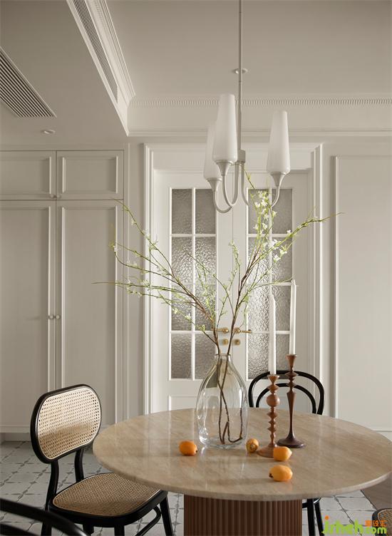 兩盞白色吊燈劃分客餐區(qū)域,全屋色調(diào)自然活潑,綠植與插花隨處可見,法式度假風(fēng)設(shè)計(jì)營造舒適自在的度假風(fēng)家居氛圍,滿足屋主對(duì)家的期待。