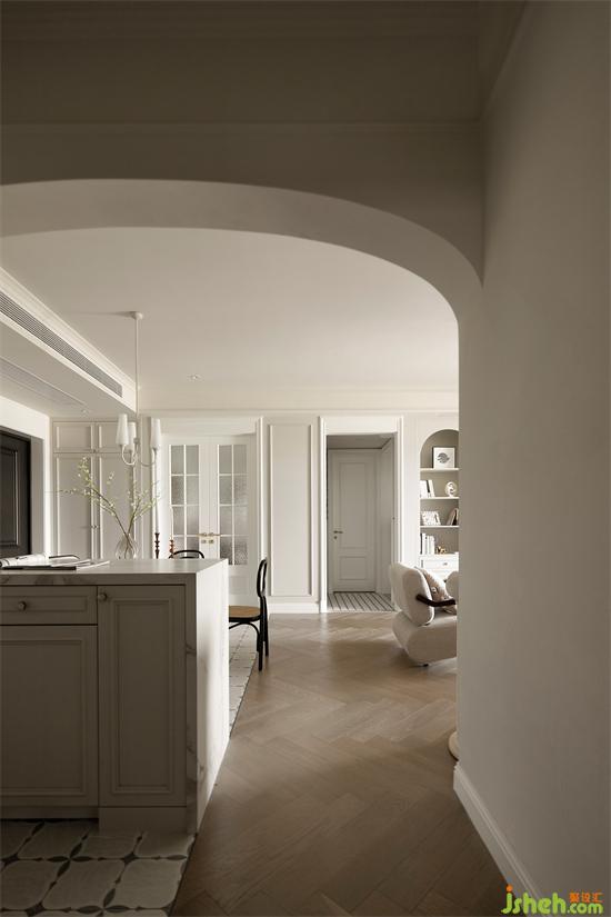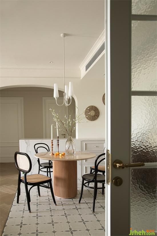 吧臺(tái)與拱門構(gòu)出優(yōu)雅實(shí)用的生活氛圍,仿蠟燭吊燈襯托法式風(fēng)格的精致感,餐廳美得像一幅畫,令人沉醉。