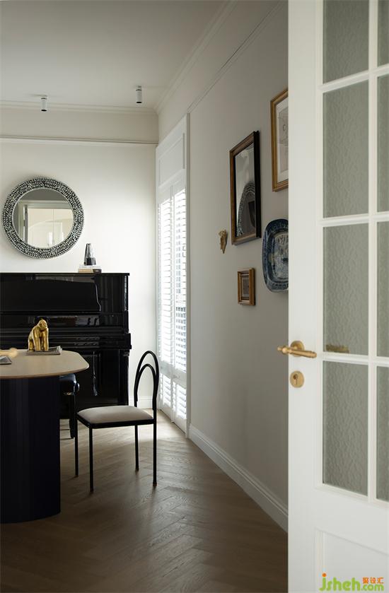 法式度假風(fēng)設(shè)計(jì)用百葉窗遮擋原始的窗臺(tái)結(jié)構(gòu),墻面用大量的裝飾畫與墻飾來點(diǎn)綴,書房也擁有優(yōu)雅精致的法式氛圍。