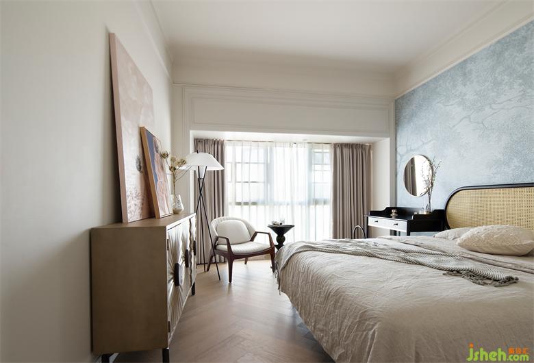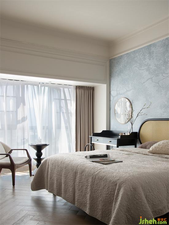 屋主喜歡的青花瓷藍(lán)調(diào)元素,我們?cè)O(shè)計(jì)在私密的主臥空間,軟裝布置與公區(qū)一致,淡雅的法式風(fēng),法式度假風(fēng)設(shè)計(jì)構(gòu)造舒適清爽的睡眠空間。