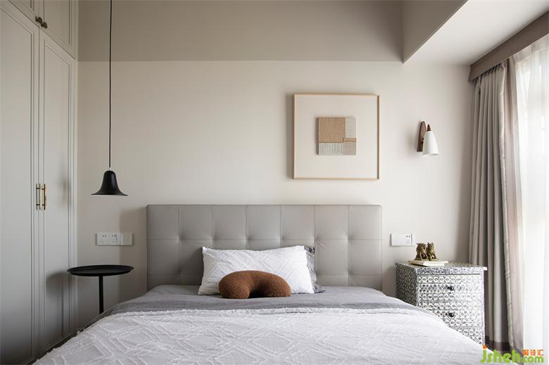 次臥以淡雅的奶茶色為主,床頭背景墻用裝飾畫點(diǎn)綴,簡(jiǎn)潔清爽。法式度假風(fēng)設(shè)計(jì)床頭兩側(cè)采用不對(duì)稱設(shè)計(jì),少了些刻板,多了幾分格調(diào)。