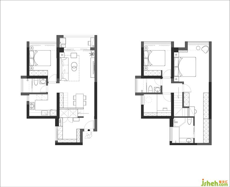?客衛(wèi)馬桶和盥洗臺橫向并列設(shè)計,搭配玻璃淋浴房實現(xiàn)基本的干濕分離;