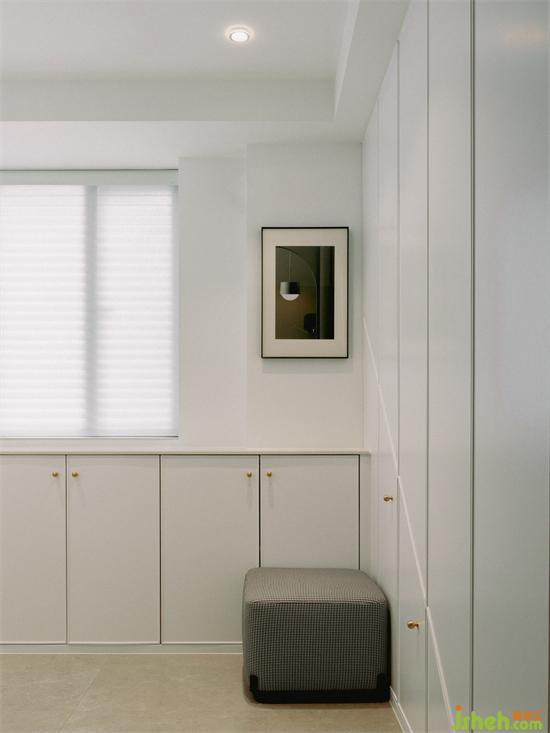 家裝設(shè)計將入戶旁邊的小房間改為儲物間,收納進門后需要更換的鞋子衣服,有效緩解玄關(guān)的收納壓力。
