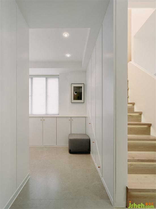 ?將入戶的小房間改為儲物間,并打通樓梯隔墻,利用一層樓梯下空間打造嵌入儲物柜;