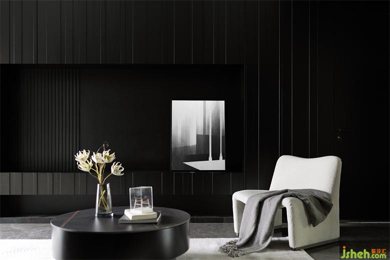 主沙發(fā)選擇皮質(zhì),單人沙發(fā)則用羊羔絨材質(zhì),顆粒感呈現(xiàn)出柔和溫馨,家裝設(shè)計中和暗黑風(fēng)的清冷。