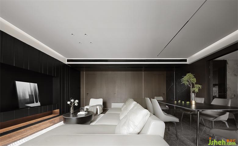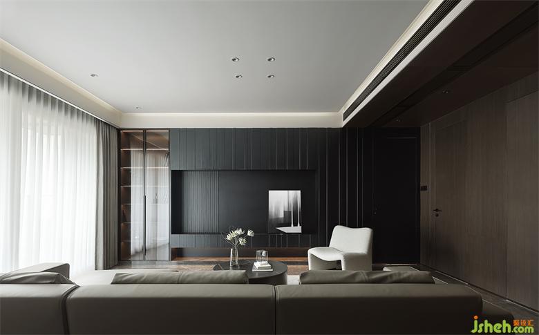 寬敞的公區(qū)一分為二,客餐廳融合且獨立,空間交流融洽又不顯雜亂。家裝設(shè)計毫無疑問的無主燈設(shè)計,主吊頂選擇留白處理,避免壓抑逼仄,其余墻面及頂部均以不同材質(zhì)飾面板覆蓋,將暗黑風(fēng)的質(zhì)感彰顯得淋漓盡致。