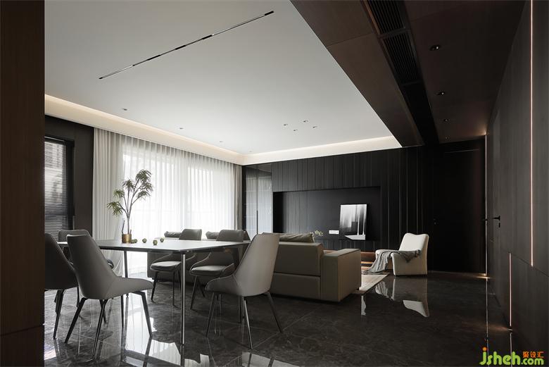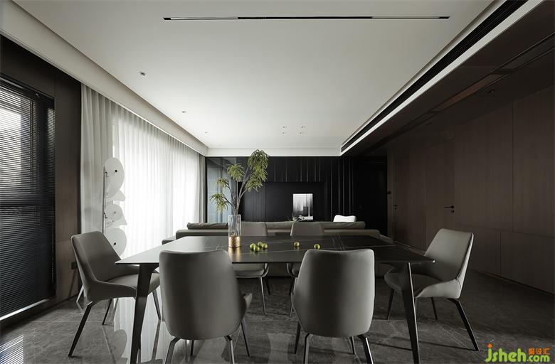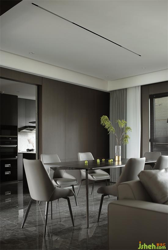 開闊的用餐環(huán)境,增強(qiáng)家人間的互動(dòng)交流,磁吸軌道燈作為餐廳的主要照明,比起吊燈更加簡(jiǎn)約通透。