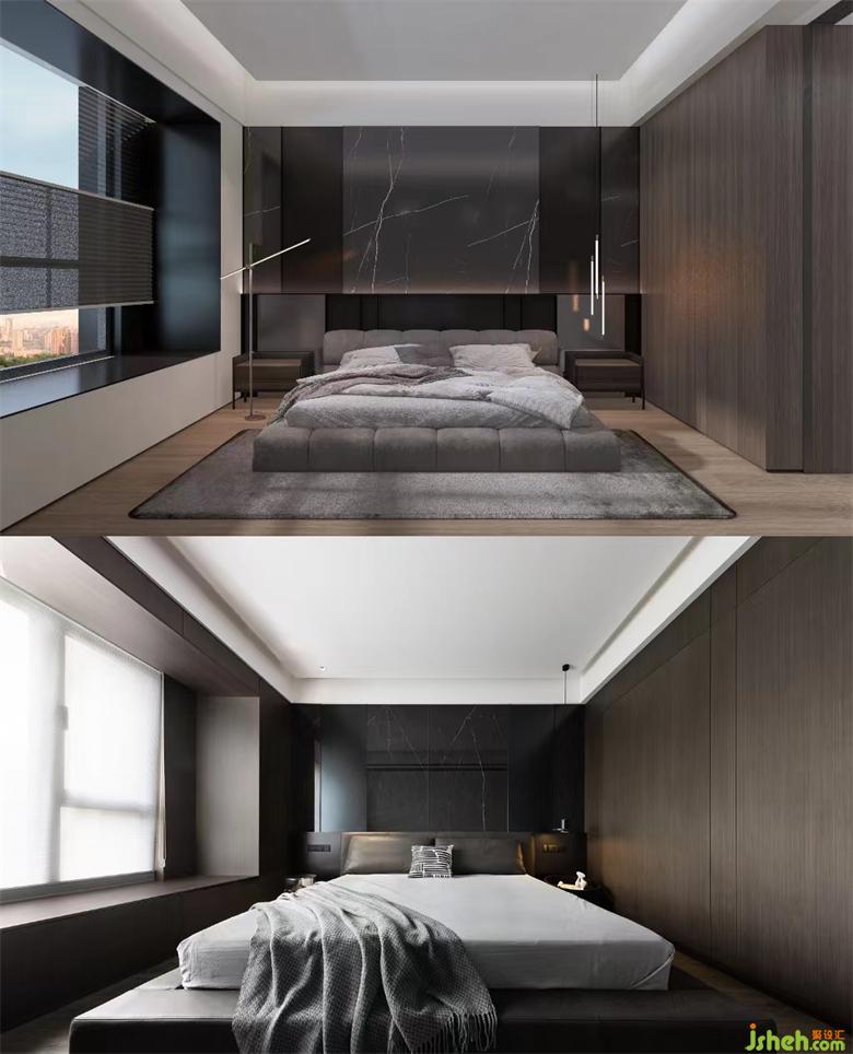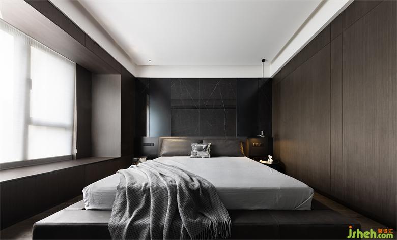 延續(xù)公區(qū)設(shè)計(jì)理念,墻面設(shè)計(jì)十分豐富,就連飄窗也被木飾面包裹,家裝設(shè)計(jì)保持空間整體性的同時(shí),質(zhì)感也得到飛躍提升,深色木材帶來的暗黑風(fēng),滿是奢華與精致。