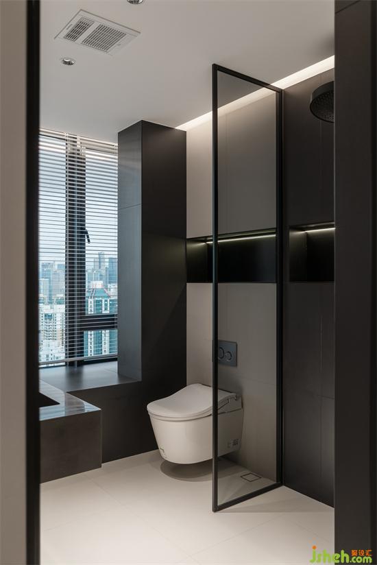 墻面壁龕中依舊嵌入燈帶,同樣用飾面板包裹,家裝設(shè)計(jì)細(xì)節(jié)上精致無(wú)比,衛(wèi)浴空間呈現(xiàn)無(wú)與倫比的時(shí)尚氣息,媲美五星級(jí)酒店的至尊體驗(yàn)。