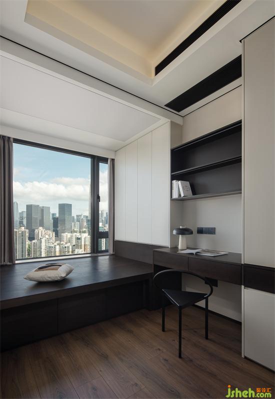 另一間次臥延續(xù)地臺(tái)床理念,家裝設(shè)計(jì)將飄窗拉寬打造榻榻米區(qū)域,既能充當(dāng)臨時(shí)睡眠區(qū),也能當(dāng)做休閑娛樂(lè)區(qū),功能豐富。