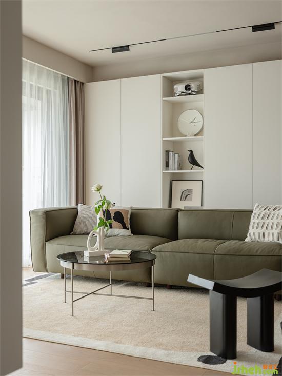 沙發(fā)款式低矮簡(jiǎn)潔,絨布搭配綠色為空間注入復(fù)古格調(diào),在大面積淺色調(diào)中作為加強(qiáng)與點(diǎn)綴,沉淀出客廳的優(yōu)雅與愜意。