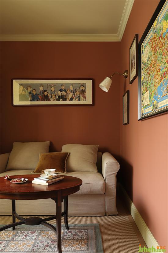中古茶幾搭配一張碎花地毯,加強(qiáng)地面層次感,家裝設(shè)計(jì)精致的布置再一次彰顯屋主的生活格調(diào),以及對生活的熱愛。