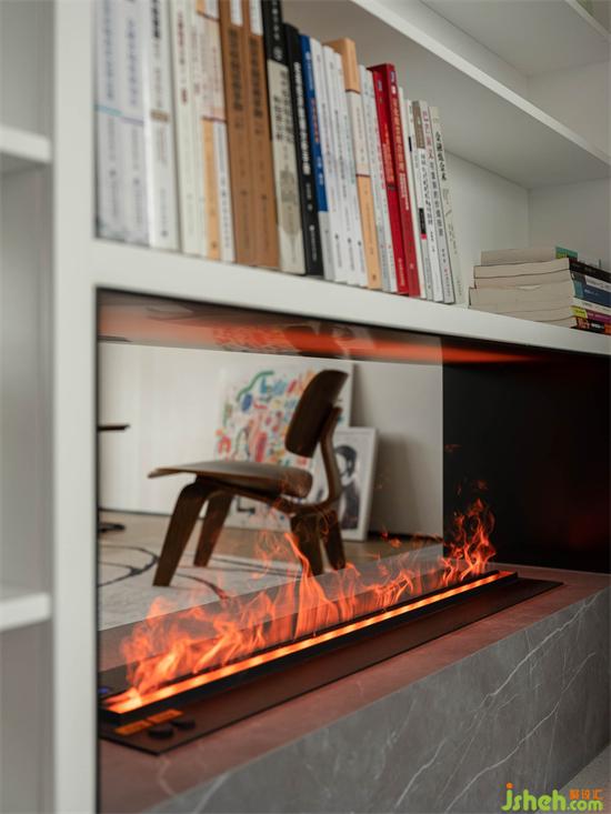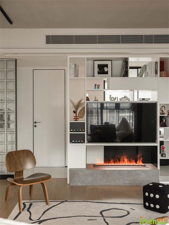 電視下方打造電子壁爐,奠定電視墻的基調(diào),虛空縹緲的火光,注入舒適溫暖的家居氛圍。