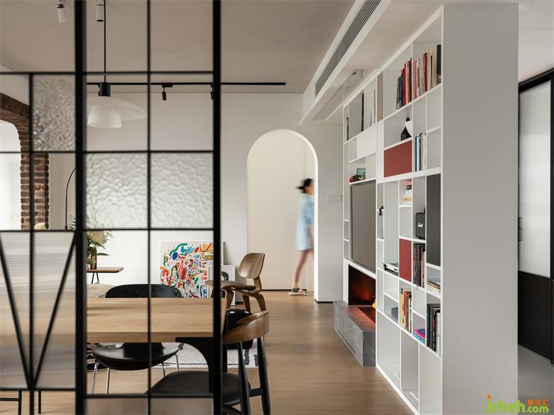 書架亦是展示柜,不同顏色的書籍仿佛跳動(dòng)的音符,呼應(yīng)五彩斑斕的裝飾畫,深圳南山東關(guān)樂尚林居家裝設(shè)計(jì)為白色空間帶來奇妙的藝術(shù)感。