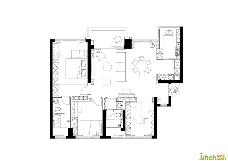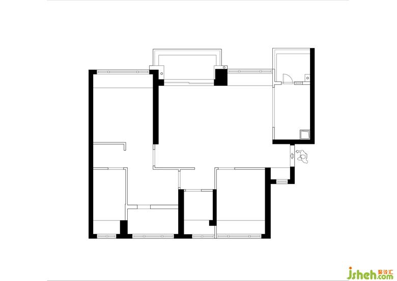 原始戶型簡單方正,但區(qū)域分布無法動靜分區(qū)處理,部分空間不合理造成利用率不高;