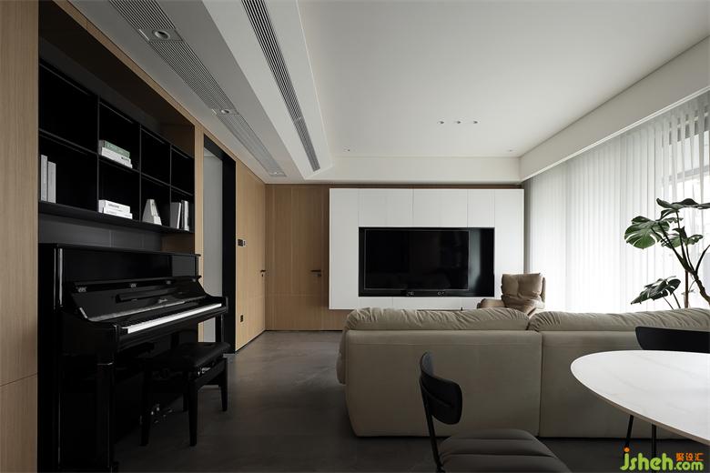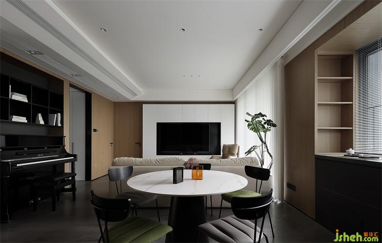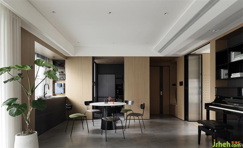 開放式空間布局,LDK一體化設計,餐廳飄窗的合理利用,深圳天健天驕裝修設計以及鋼琴“摳出”墻面空間妥善放置,加入多功能房的設計,滿足日常辦公、臨時居住等需求,空間得到高效且合理的利用,生活便捷且舒適。