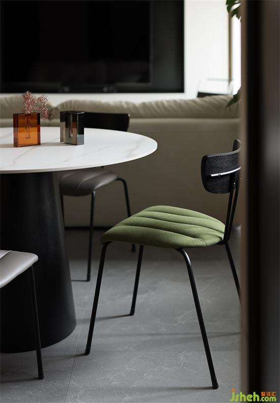 餐椅款式簡潔利落,纖細(xì)的支架結(jié)構(gòu)輕盈小巧,深空灰與青草綠搭配,內(nèi)斂且高級。