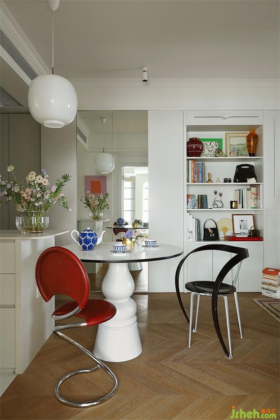 空間白色為主、小面積彩色為輔的配色比例,在碰撞張力中鋪墊了高雅基調(diào),更能襯托出每一處設(shè)計(jì)的巧思。