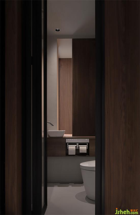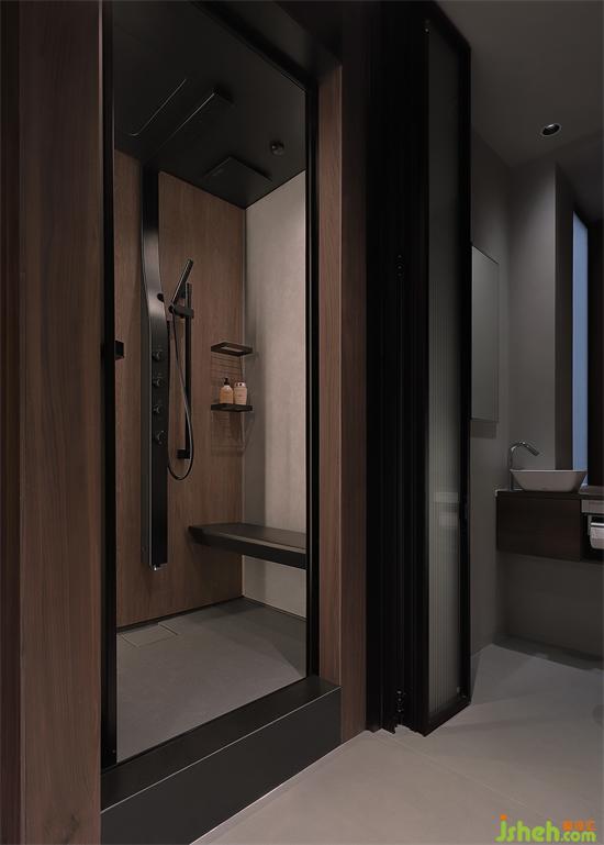 衛(wèi)生間采用三分離布局,獨(dú)立的馬桶區(qū)和淋浴區(qū),深圳首地容御豪宅設(shè)計(jì)分別采用折疊玻璃門(mén)隔斷,美觀且通透。馬桶間內(nèi)置小巧洗手臺(tái),打造潔凈高效的品質(zhì)生活。