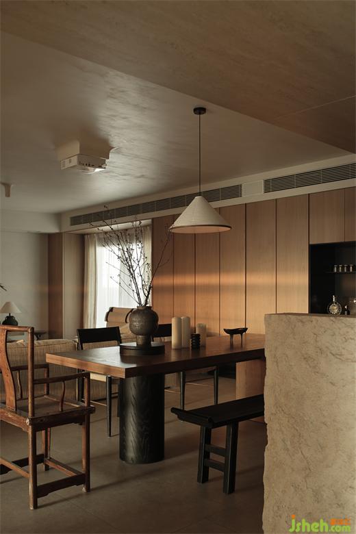 設計師認為:中國人的家,應該有東方人文的生活態(tài)度。不以簡單或復雜的裝飾定位生活主題,期望透過最質(zhì)樸簡單的語言,時光筑造設計探索東方現(xiàn)代主義感的家。讓生活回歸情感,將自然、度假感導入室內(nèi)空間,充分融合屋主以及家人的偏愛和喜好,連接東方美學到當代生活。