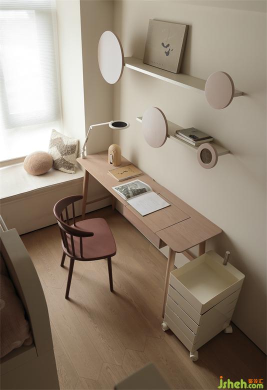 時(shí)光筑造設(shè)計(jì)以圓的形態(tài)參與到功能區(qū)的劃分,上床下活動(dòng)區(qū)靈活收納,逐漸培養(yǎng)她們的社交能力和歸屬感,為童年增添美好與想象力。