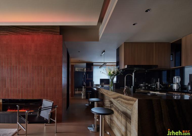 廣州住宅設(shè)計不同材質(zhì)的組合設(shè)計成了空間中的一大亮點(diǎn),憑借著獨(dú)特質(zhì)感詮釋著自由與不拘束的姿態(tài),隱形壁爐營造出懸浮的視覺效果,讓材質(zhì)包容起更多個性與自由。