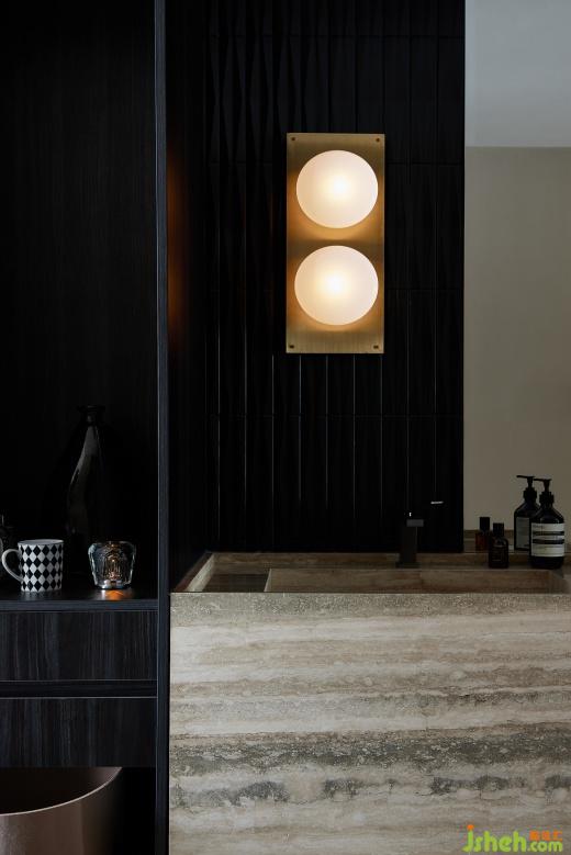 全屋以深色為主色調(diào),如同夜空中最濃重的墨色。偶爾點綴的亮色材質(zhì)與柔軟的沙發(fā)形成鮮明對比,是一個充滿魅力和個性的空間,為居者帶來了與眾不同的居住體驗。