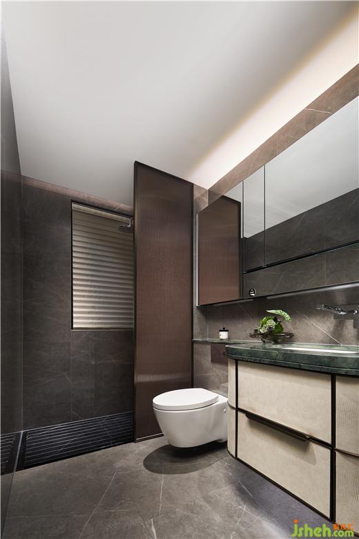 臥室的墻面選取低飽和色涂料,低調(diào)內(nèi)斂,舒適可親,衛(wèi)生間冷灰瓷磚、延續(xù)的瓦松綠臺面,以簡御繁,以寡勝多,讓生活舒適、輕盈。為匆忙的生活留下一片精致凈地,便能收獲不一樣的內(nèi)心境界和生命高廣。