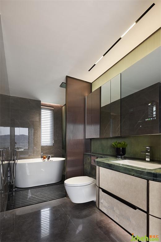 樣板間設(shè)計以空間功能區(qū)分,用不同合適的材質(zhì)延續(xù)空間綠色的生命感。主臥浴室臺盆的弧形也將空間的手法貫穿于各個角落,細(xì)節(jié)見驚喜。