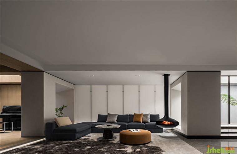 休閑區(qū)以淡雅的黑白色,北京半山別墅設(shè)計(jì)搭配清新自然、柔軟舒適的陳設(shè),在開敞交互與框景設(shè)計(jì)中,淡化界限,以容納生活百味。