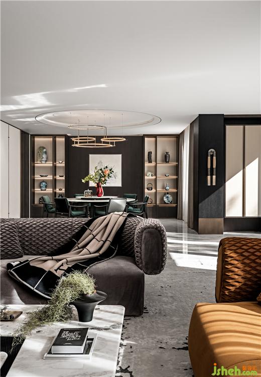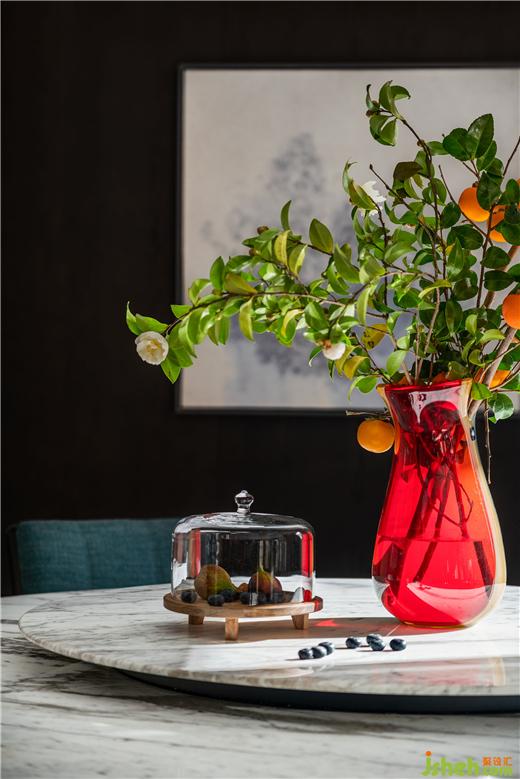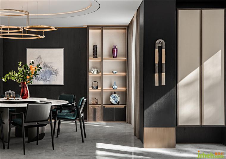 烹飪享食間,予人藝術(shù)聯(lián)結(jié)與審美熏陶。北京半山別墅設(shè)計以多樣的展陳方式提升餐廳格調(diào),現(xiàn)代手法表現(xiàn)的水墨畫作為東方元素延續(xù)于此,圓弧與方正對話,加以多樣燈光的點綴,無形中增添了時尚之感,唇齒留香,視覺盛宴。