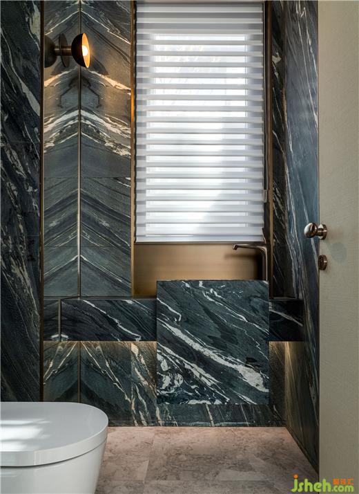 大理石的自然肌理嵌入金屬,北京半山別墅設(shè)計營造別具一格的公衛(wèi)質(zhì)感,時尚又不失個性。