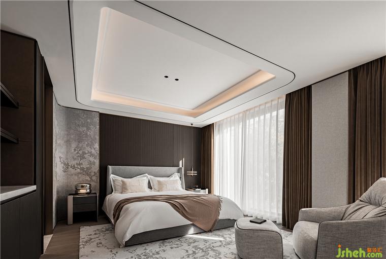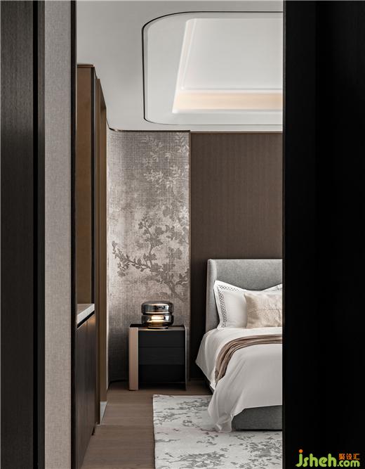溫潤格調(diào)融合東方意蘊,多層灰度與咖色交織,舒緩的弧形與素凈的材質(zhì)碰撞,在老人房勾勒出幾分閑適,呈現(xiàn)安然的理想狀態(tài)。