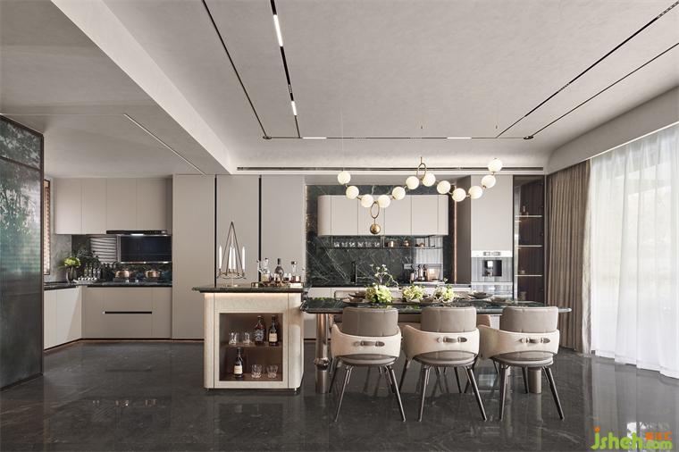 深入向前,客廳似一幅畫卷徐徐展開,闊綽尺度,奢適無界,開放舒展,視線寬敞。特色捫皮、夾絲玻璃與真絲面料強(qiáng)調(diào)卓越品質(zhì),不銹鋼與石材在碰撞中催生別樣美感。樣板間設(shè)計(jì)自然優(yōu)雅的氣息彌漫整個(gè)空間,包容、隨性的生活理念也在盡情蔓延。