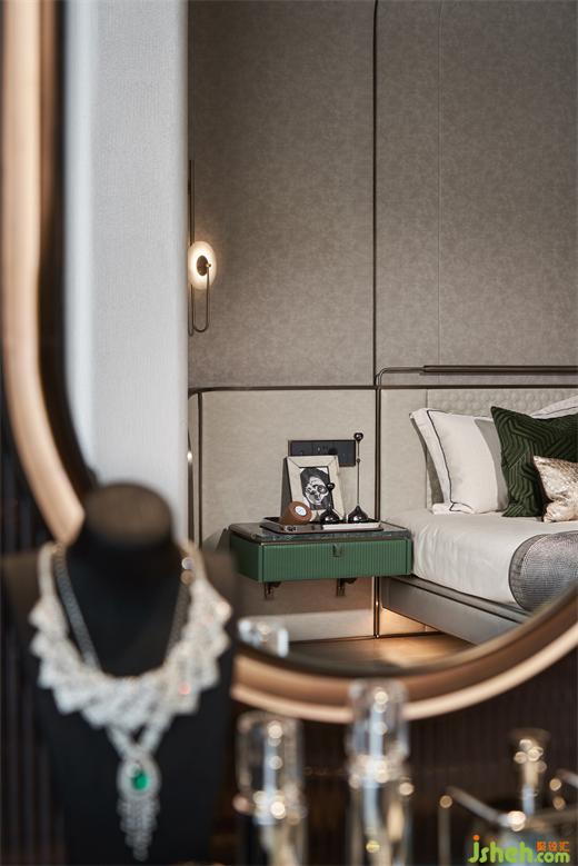 貼心的細(xì)節(jié)總是在不經(jīng)意間被關(guān)照與呵護(hù)。床底與飄窗設(shè)有溫馨、人性化的燈光系統(tǒng),超大化妝臺的定制,床頭及衣柜的一體設(shè)計(jì),處處彰顯著設(shè)計(jì)師對功能梳理的匠心思考。