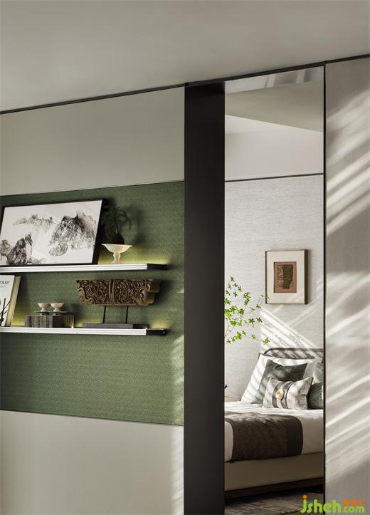 客廳的暗門內別有洞天,設計師通過對材質的巧妙處理,強調外在的完整與統(tǒng)一。內部則打造老人房套間,樣板房設計以輕松簡雅的人文意境,融合星級酒店的尊享體驗,營造愜意自然的棲息之地。