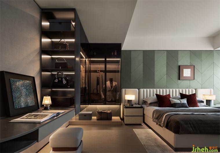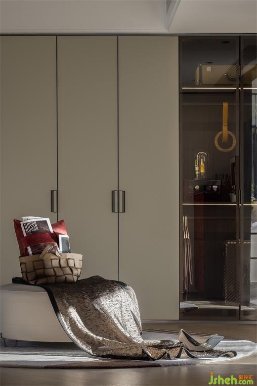 拋去煩惱,尋找隱秘柔軟的自留地,在此間放松身心,回歸真我。主臥套房以居者為中心,將男女式衣帽間、衛(wèi)浴空間等多種功能囊括其中,休憩之地的開闊與愜意被拉到最大,包容著無限情感。步入式衣帽間分男女而立,于開合之間,奏響空間的交響樂。